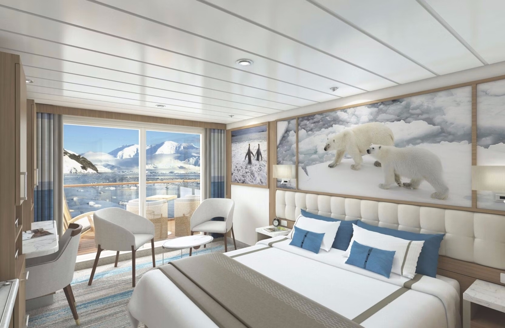 With a bit more room to stretch the legs, the Balcony Stateroom Superiors are perfect for polar adventures who travel with plenty of gear. Located on Deck 4 and 6, the Staterooms feature floor to ceiling windows, en-suite bathrooms and a comfortable desk area.