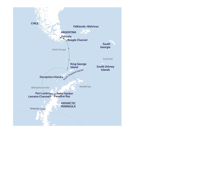 Note: At the conclusion of the voyage, we do not recommend booking flights departing Ushuaia prior to 12.00 pm on the day of disembarkation in case there are delays.