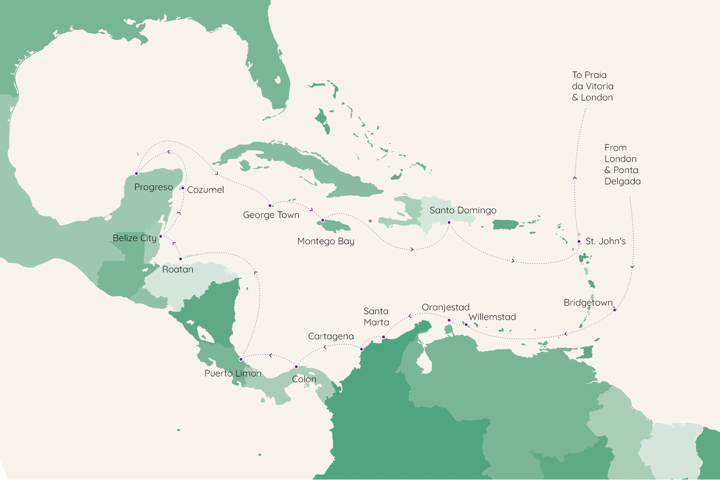 Explore the wonders of Central America with Ambassador Cruise Line, featuring captivating stops in Panama, Costa Rica, Honduras, and Mexico. Each destination offers a unique blend of natural beauty, vibrant culture, and exciting adventures. Whether you're marveling at the Panama Canal, exploring Costa Rica's rainforests, relaxing on Honduras' pristine beaches, or enjoying Mexico's rich history and coastline, this cruise promises an unforgettable escape. Immerse yourself in comfort and luxury while visiting these remarkable destinations.