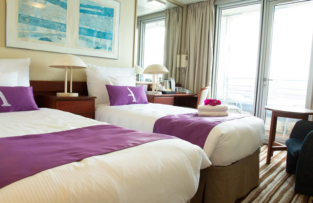 The Balcony Cabin offers a front-row seat to the mesmerising beauty of the ocean. These refined accommodations feature a private balcony and two twin beds that are easily convertible to a double bed for flexibility. Some cabins also include a third and/or fourth upper berth that is perfect for families or groups.