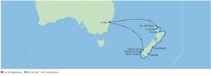 Starting from the iconic shores of Sydney, this remarkable journey winds through the breathtaking fjords of New Zealand’s South Island, including the dramatic landscapes of Doubtful Sound, Dusky Sound, and Milford Sound. The route then moves to vibrant cities like Dunedin and Christchurch before heading north to Tauranga, Auckland, and the picturesque Bay of Islands. The adventure concludes with a return to Sydney, offering a rich blend of natural wonders and cultural highlights along the way.