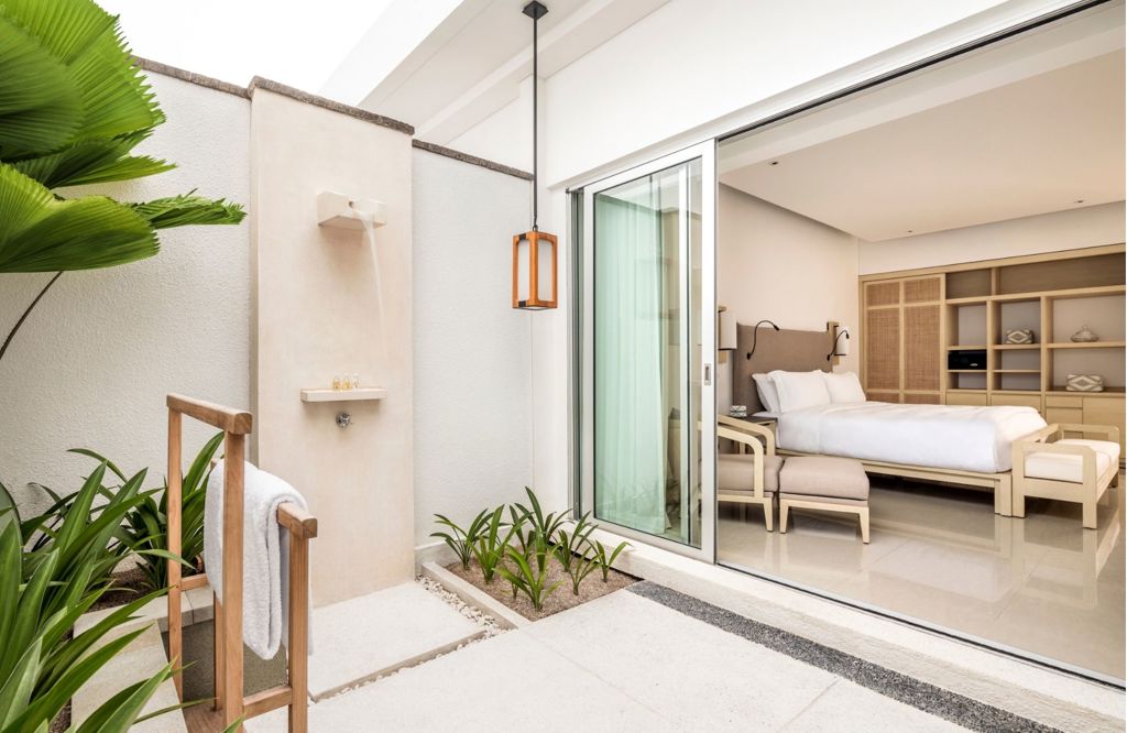 The Garden Patio Rooms at COMO Uma Canggu offer a peaceful sanctuary with contemporary interiors, a private patio surrounded by vibrant greenery, direct garden access, and seamless indoor-outdoor living—perfect for relaxation just moments from the beach.
