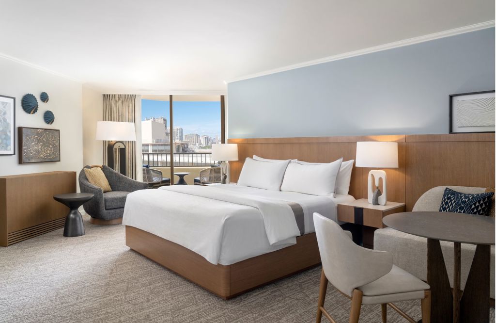 The Tower City View Rooms at Moana Surfrider provide stylish accommodations with beautiful views of downtown Honolulu.